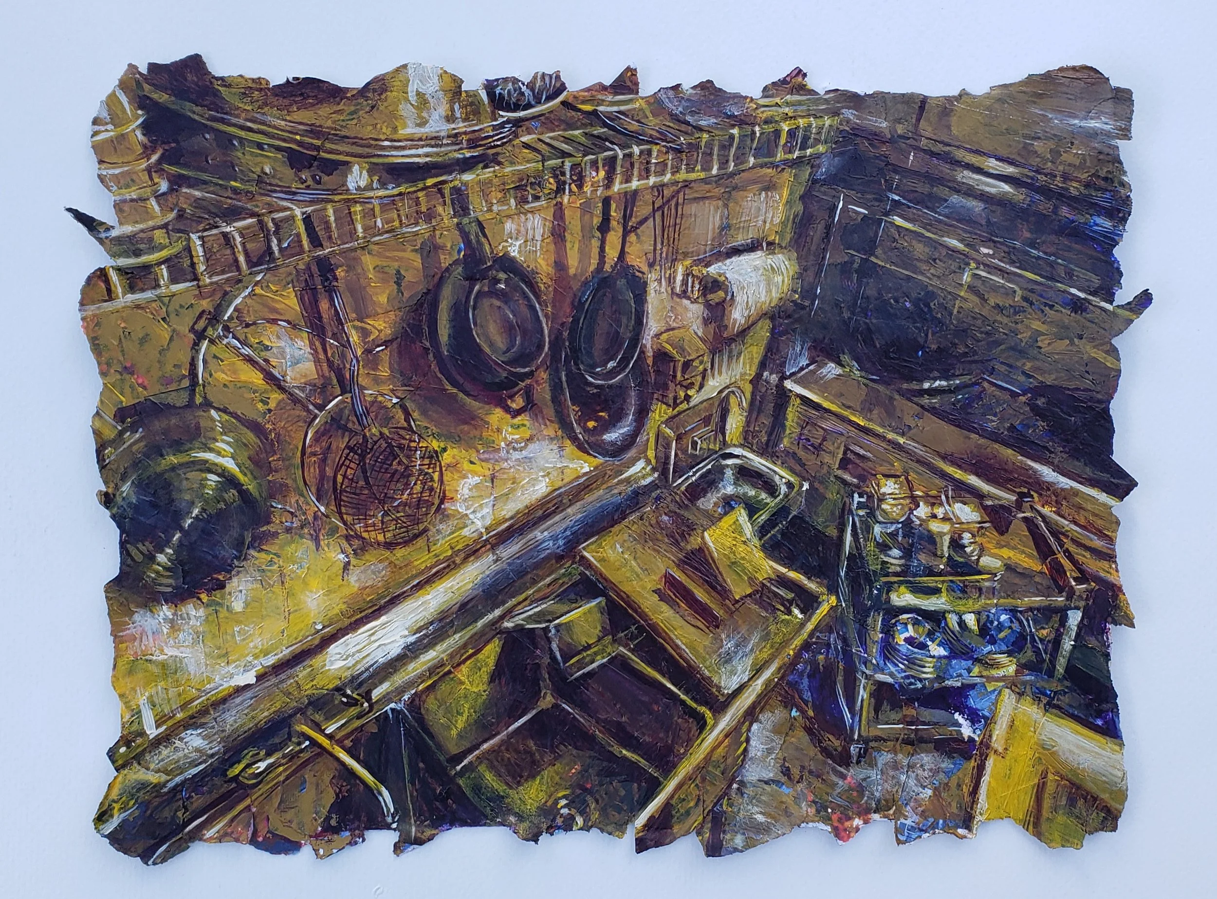 Man Cave ISSUE 4 Sept 2023 Catherine Chung acrylic, newsprint, gessoed collage, recycled magazines, 9" x 12" artColin BassettSeptember 13, 2023