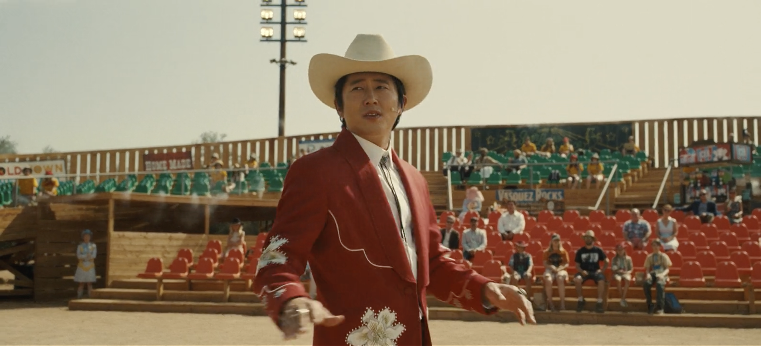 Like Get Out, Jordan Peele’s recent film Nope similarly includes a single Asian character among people of color and whites who, like Tanaka, comes from an acclaimed background. Korean American character Ricky “Jupe” Park in Nope is a former child actor who has a respectable career as a show and amusement park business owner. However, his position as an Asian man is not distinctly demonstrated. His race is not discernibly acknowledged in ways other than appearance, and no characters in the film make suggestions about his identity. Park’s relationship to his race is not depicted in ways that demonstrate him as an “ethnic” character, such as a distinguishable heavy accent. Instead, his identity as an Asian man is unconventionally portrayed in an exceedingly American way. Though unusual for the film to depict an Asian American as the typically white American role of a cowboy in media, the choice to do so speaks to long-held attitudes of Asian Americans holding positions of superiority as minorities by conforming to whiteness. He played the child of a white family in his acting career, and in the present time, is shown only wearing Western costume wear, accompanied by his Southern, white wife. In ways similar to Hiroki Tanaka, “Jupe” Park upholds a status of being able to assimilate into white America that the other characters of color do not have. African American central characters OJ and Emerald Haywood struggle with the decline of their family business, and Hispanic side character Angel Torres has ample technical knowledge but a relatively unskilled job. With Park publicly affirming his “Americanness” through the archetypal Western showman of a Wild West-themed amusement park, Nope indicates the presence of Asian privilege in ways more subtle to Get Out. His accomplishments as a businessman and former child actor are also emblematic of the model minority myth through his economic success. Park is the only person of color who did not survive the UFO attacks during the climax of the film. His demise of being eaten by the UFO was caused by his intentions to profit off it for his show, no different than the deaths of two white characters. An unnamed paparazzo and cinematographer Antlers Holst similarly met their downfalls in attempts to capture footage of the UFO for profit. In those desires for revenue, Park and the white characters capitalize on OJ and Emerald’s business. Park acts as a financial patron to OJ and Emerald as a customer of their horses, exploiting and monetizing the horses to promote his show. The paparazzo shows up uninvited, intruding on OJ and Emerald’s ranch, and Holst agrees to help OJ and Emerald film footage to later betray them for acquiring his own footage. Analogous to the plot of Get Out, the narrative of Nope centers around Asian and white characters who attempt to exploit other minorities for personal gain.