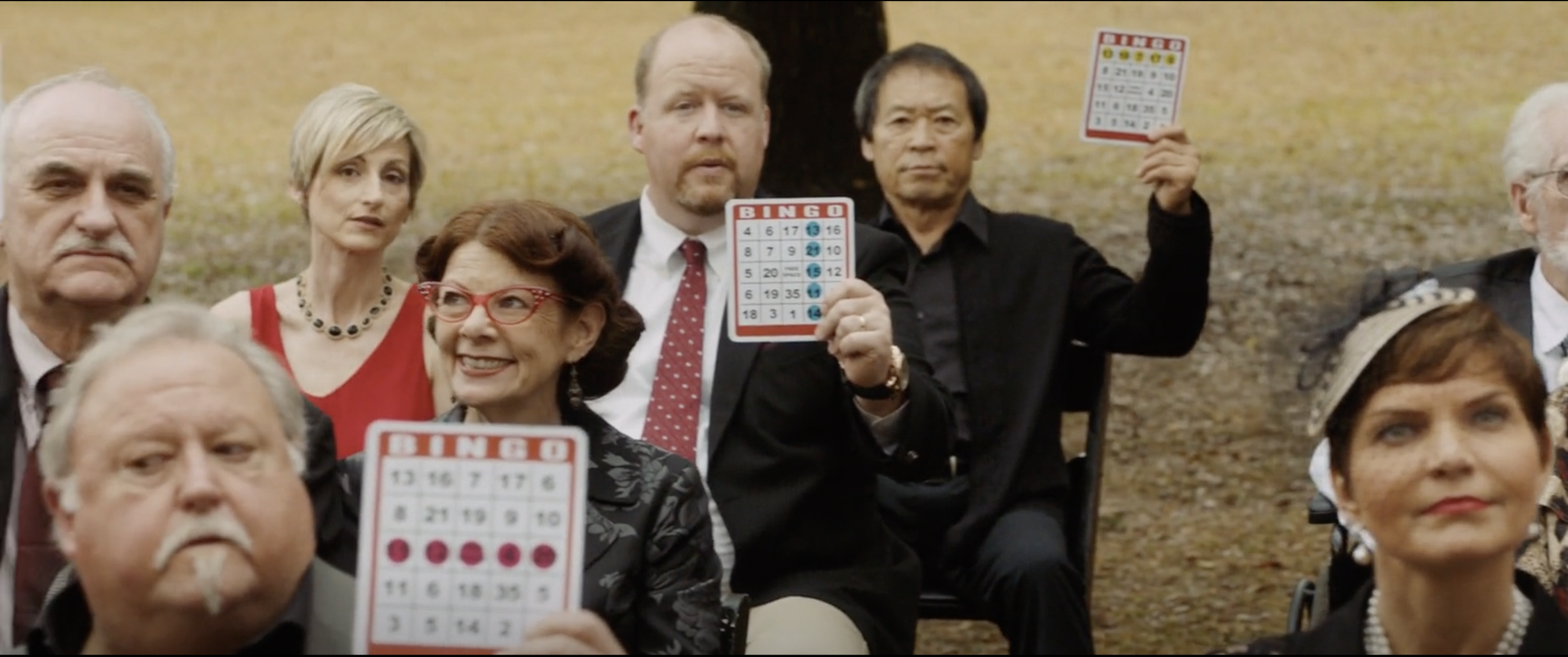 The Asian character is one of the guests at the mostly white cocktail party thrown by Rose’s parents that also secretly functions as a modern-day slave auction. The scene opens with Chris walking into the cocktail party, introduced to a horde of guests. The white guests approach Chris with uncomfortable questions. A retired golf player examines his physique and compares him to Tiger Woods. Another woman touches his bicep and chest, asking Rose about his skills in bed. One man even straightforwardly tells him that “black is in fashion.” Among the white guests, a sole Asian man is the only minority represented at the party other than Logan King, a black man who later is discovered to be a white man possessing a black man’s body. The Asian man introduced as Hiroki Tanaka asks Chris in a heavy Japanese accent, “Do you find that being African American has more advantage[s] or disadvantage[s] in the modern world?” Chris, nervously laughing, responds with “Yeah, I don’t know man.” In a later scene, a portrait of Chris is presented by the auctioneer. Tanaka is seen holding up a bingo card along with the other white guests in a bid for Chris’s body.